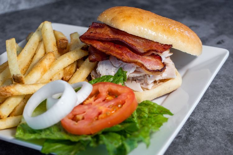 We offer great sandwiches and burgers. Turkey bacon clubs, BBQ chicken, Italian melts, and more. We also have a delicious guacamole burger!