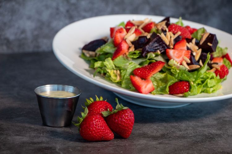 Our signature strawberry beet salad is must. Our apple walnut salad is great for fans of feta cheese and of course apples and walnuts.