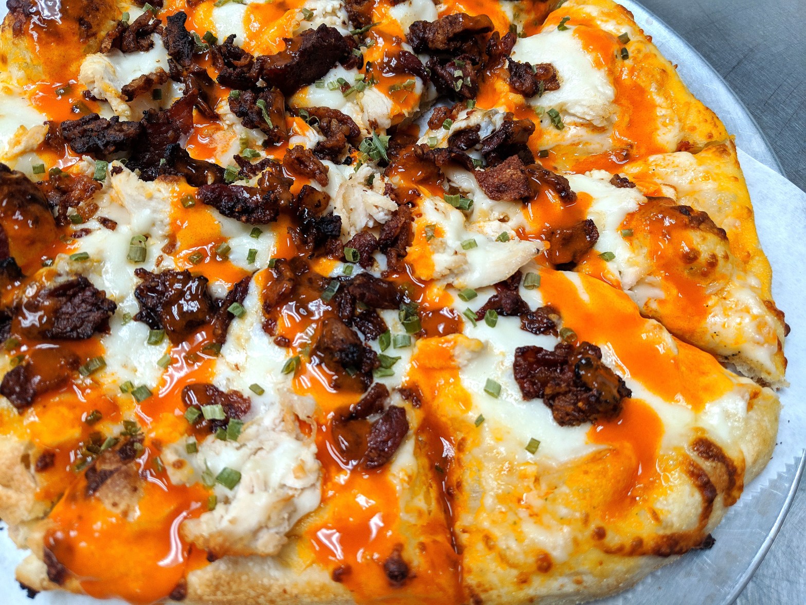 Our original Buffalo ranch sauce, Fresco cheese blend, marinated chicken, chives, and bacon