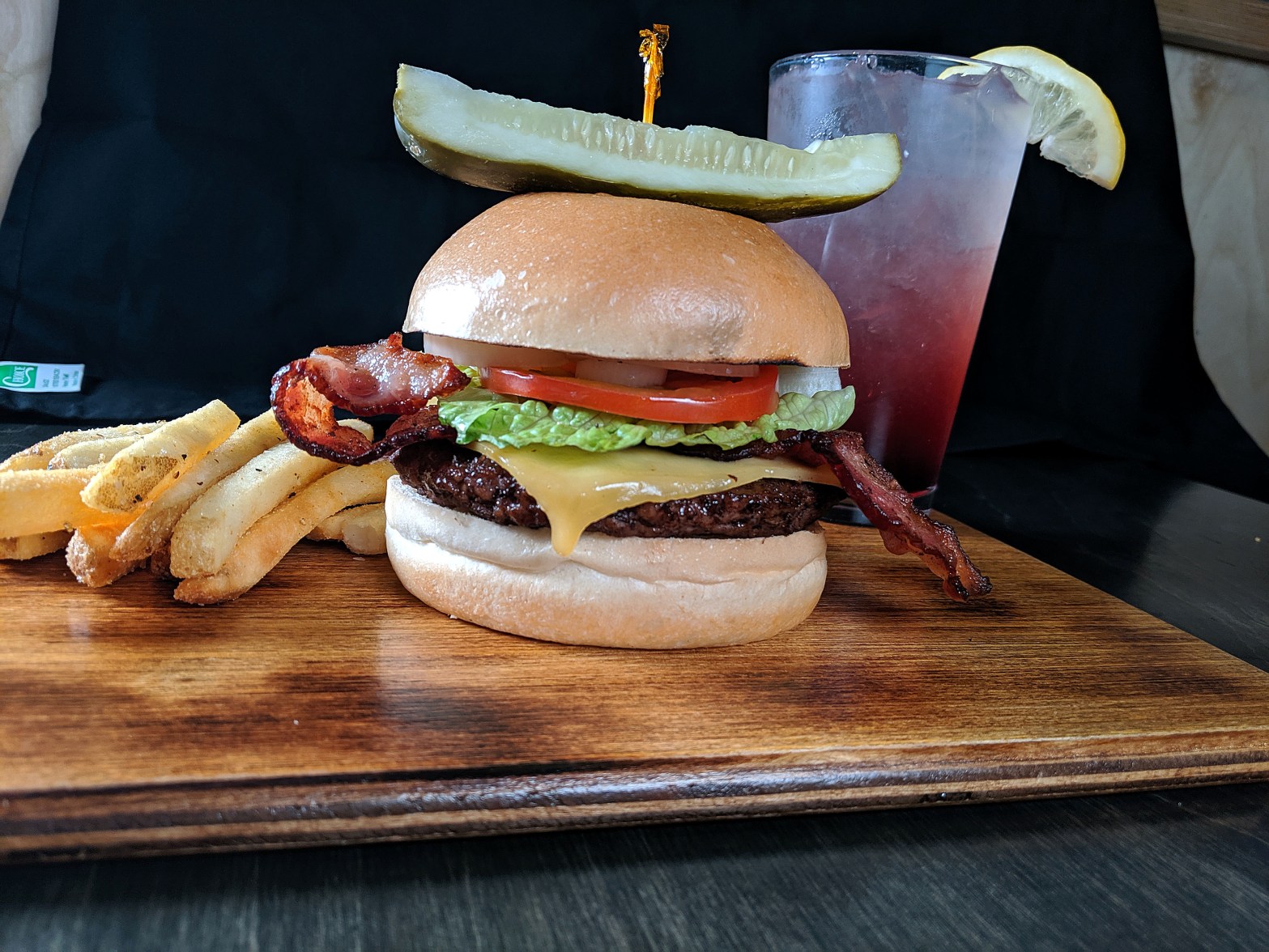 Half pound premium brisket blend with lettuce, tomato, smoked gouda cheese, onion aioli, bacon and a pickle spear served on our split-top bun